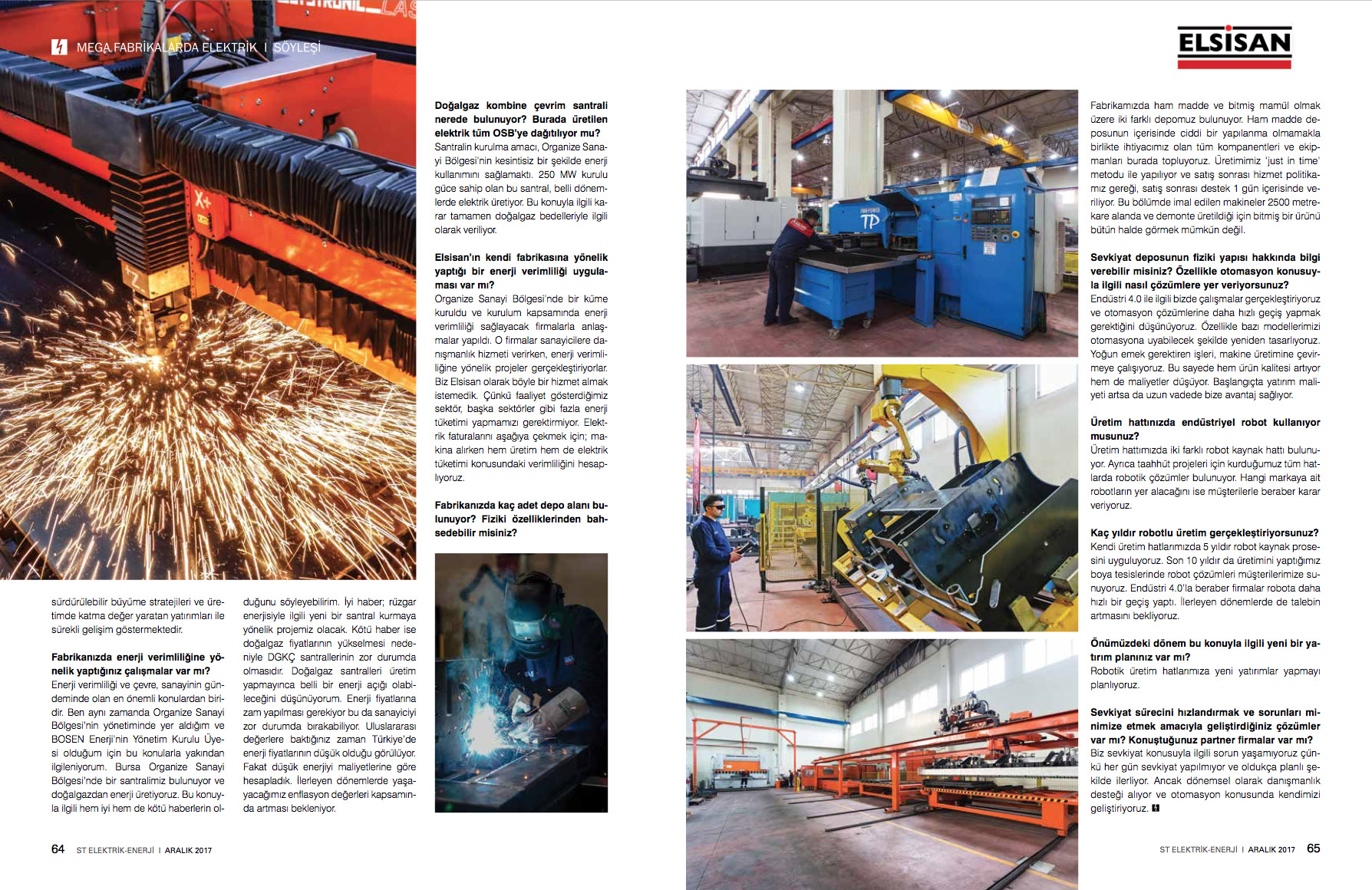 Organize Sanayi Bölgesi’nde bir küme kuruldu ve kurulum kapsamında enerji verimliliği sağlayacak firmalarla anlaşmalar yapıldı. O firmalar sanayicilere danışmanlık hizmeti verirken, enerji verimliliğine yönelik projeler gerçekleştiriyorlar. Biz Elsisan olarak böyle bir hizmet almak istemedik. .ünkü faaliyet gösterdiğimiz sektör, başka sektörler gibi fazla enerji tüketimi yapmamızı gerektirmiyor. Elektrik faturalarını aşağıya çekmek için; makina alırken hem üretim hem de elektrik tüketimi konusundaki verimliliğini hesaplıyoruz.